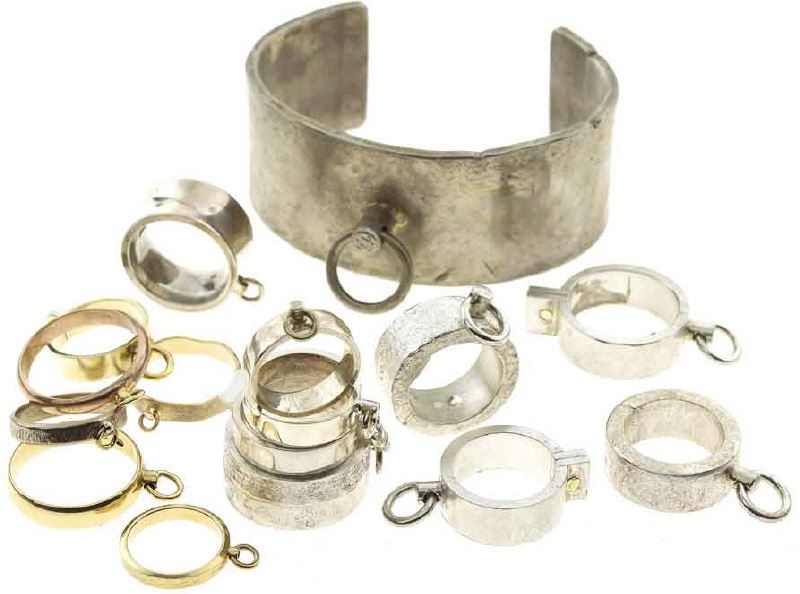 In my goldsmith studio in Cologne, Germany, I create quite a number of different handcrafted pieces of jewelry made of precious metals like silver, gold, platinum and more uncommon materials like titanium, surcical steel, meteorite metal, mammouth ivory, etc.etc. ... which are intended to work as symbol-jewelry for BDSM, bondage and fetish lovers.