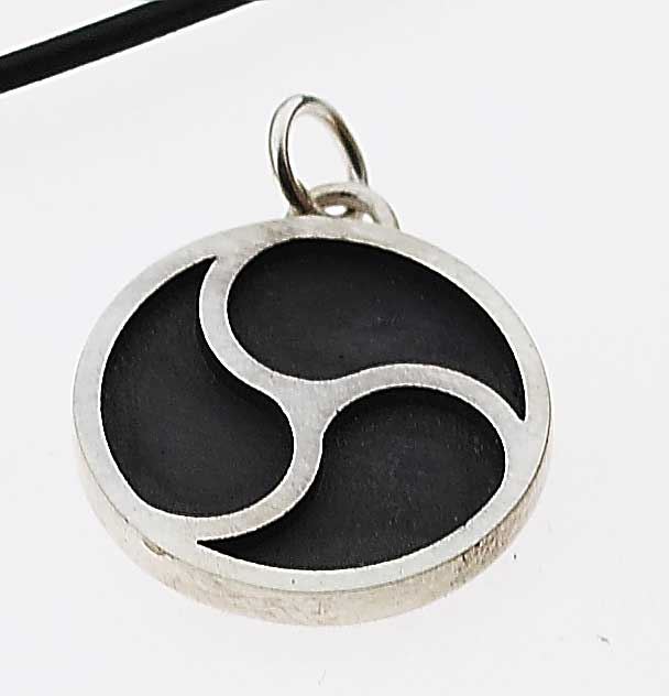 Huge and very visible pendant showing the BDSM triskel emblem made from a massive piece of 925 sterling silver.