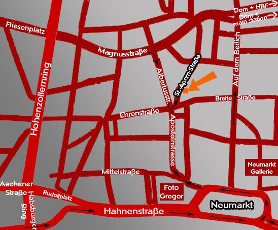 Sie finden unser Atelier mitten in Köln, in direkter Nähe zum Friesenplatz und sind herzlich eingeladen vorbeizuschauen und meine Arbeiten persönlich anzuschauen und anzuprobieren.