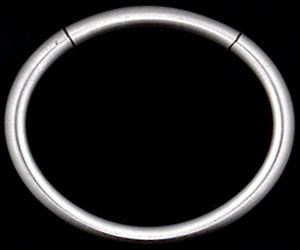 Der Verschluß ist genial einfach: Extrem paßgenau ist ein Segment wie bei einem Spannring zwischen die Enden der Armspange gespannt... Er hält wirklich fest und kann sich durch ungewollte Bewegungen oder normales Anstoßen nicht von allein lösen!