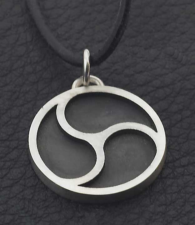 Huge and very visible pendant showing the BDSM triskel emblem made from a massive piece of 925 sterling silver.