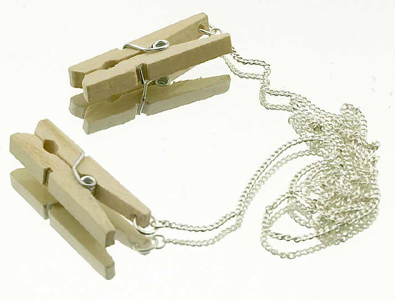 Die Kette besteht aus 925/000 Sterlingsilber, die Klammern sind aus Holz