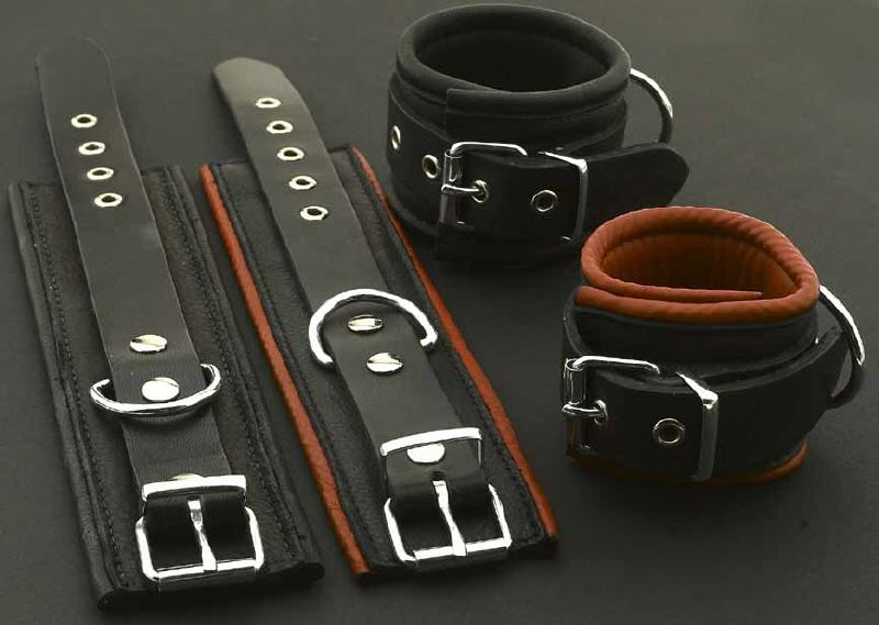 Handmade wrist and ankle restraints made from strong, but super soft and cuddly leather.