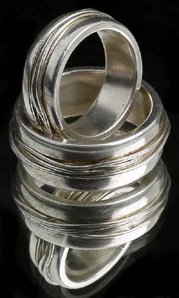 This ring is handicrafted from single pieces. It is available with two, three or four rows.