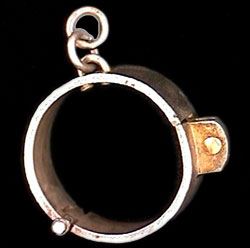 Abweichend vom Text des Buches "L`histoire d O" von Pauline Reage, wo von einem schlichten Eisenring die Rede ist, sollte mein erster Ring sofort als Abstraktion einer Sklavenfessel, eines Sklavenhalsbandes, einer verschmiedeten Handschelle o.a. erkennbar sein.