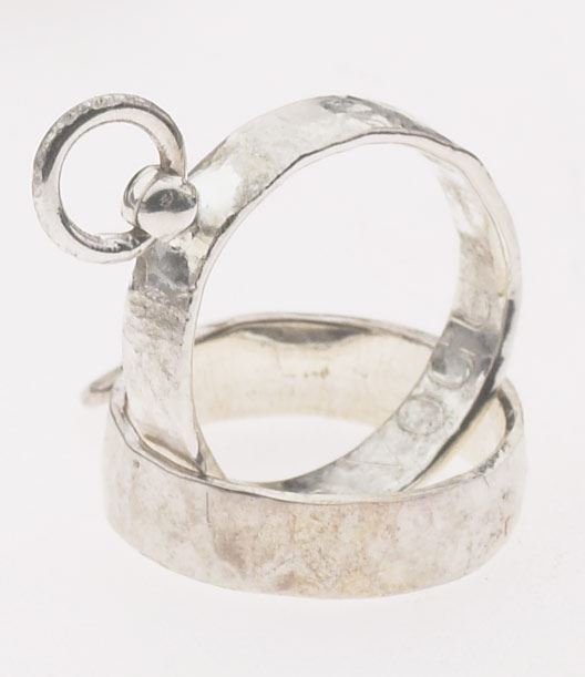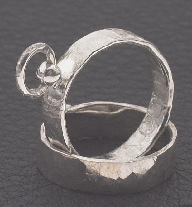 Dieser Ring der O ist weniger auffällig gestaltet, mit dünner und schmaler Ringschiene und Schmiedestrukturen als Designelement.