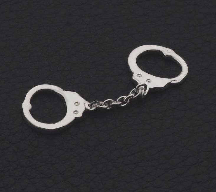 Handgearbeitete Mini-Handschellen aus 925/000 Sterling Silber als Anhänger.