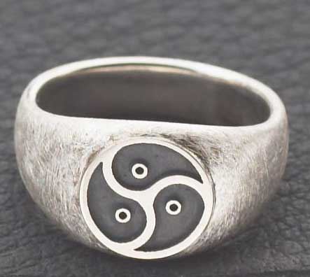 Hier ist eine Interpretation dieses Ringes von mir, die sich an dieser Beschreibung orientiert und gleichzeitig dem von Quagmyr entworfenem BDSM Emblem Projekt rechnung trägt: